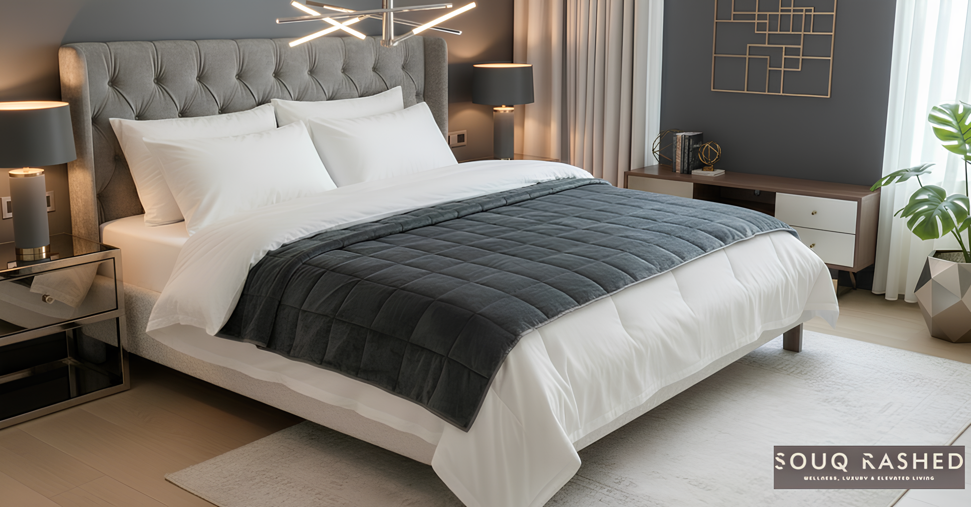 Откройте для себя невероятный комфорт утяжеленного одеяла Souq Rashed "Hugging Mother", разработанного для того, чтобы улучшить ваш сон.